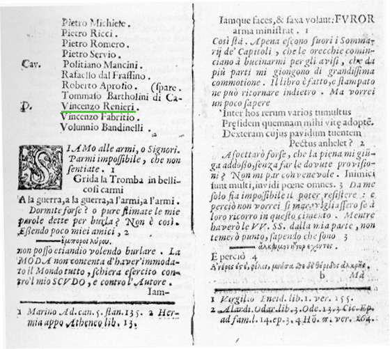 Aprosio invia questa EPISTOLA LETTERARIA SULLE RAGIONI PER CUI HA COMPOSTO LO SCUDO DI RINALDO anche a VINCENZO RENIERI matematico originario di Genova, amico e corrispondente di Galileo Galilei
