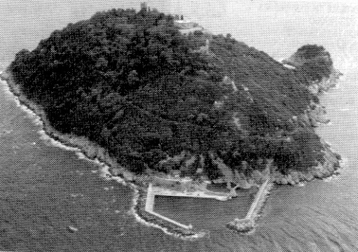 L'ISOLA DELLA GALLINARIA [GALLINARA] IN UNA ISTANTANEA TRATTA DAL QUOTIDIANO TORINESE "LA STAMPA" DEL 10 - 10 - 2001: SI NOTA IL PORTO, NECESSARIO PER L'APPRODO TURISTICO E LA VISITA AL COMPLESSO INSULARE COMPRESI I REPERTI ARCHEOLOGICI DEL VECCHIO CENTRO CENOBITICO SULLA ZONA CUSPIDALE