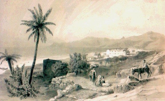 A PRESCINDERE DALLA VALENZA ESTETICA LA STAMPA E' STORICAMENTE SIGNIFICATIVA IN QUANTO PERMETTE DI EVIDENZIARE L'EVOLUZIONE DEL BORGO MARINA DI BORDIGHERA E IL SUO STATO A META' DEL XIX SECOLO
