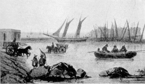 "LO SBARCO DI GARIBALDI A MONTEVIDEO VERSO IL 1840 (PALAZZO ROSSO, GENOVA)" [IMMAGINE CON RELATIVA DIDASCALIA TRATTA DAL VOLUME DI NICCOLO' CUNEO STORIA DELL'EMIGRAZIONE IN ARGENTINA (1810-1870), MILANO, 1940 - VEDI ORA QUI LE FORTIFICAZIONI DI MONTEVIDEO NEL 1843 E NEL 1849