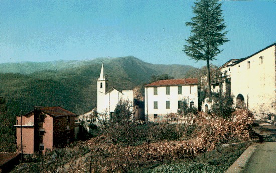 NELL'IMMAGINE LA CHIESA PARROCCHIALE DI ARMO: SI INTRAVEDONO ANCHE LA CASA MUNICIPALE E L'ORATORIO