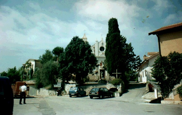 IL BORGO DI GRIMALDI SUPERIORE, FRAZIONE DI VENTIMIGLIA, CON AL CENTRO DEL COMPLESSO DEMICO IL SANTUARIO DI NOSTRA SIGNORA DELL'ARIA APERTA
