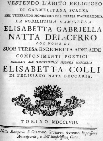 QUESTA SETTECENTESCA CANTATA FU SCRITTA E MUSICATA PER CELEBRARE LA MONACAZIONE DI UNA GIOVINE DI ARISTOCRATICA FAMIGLIA: CLICCANDO QUI SI PUO' LEGGERE PER INTIERO IL TESTO RIPRODOTTO DALL'ORIGINALE, IN VOLUME MISCELLANEO IN BIBLIOTECA PRIVATA DI VENTIMIGLIA