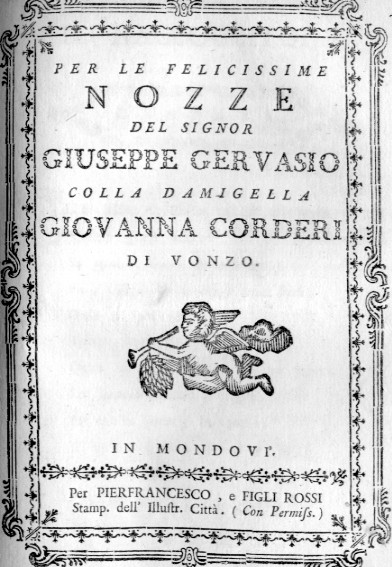 QUESTA SETTECENTESCA CANTATA FU SCRITTA E MUSICATA PER CELEBRARE LA NOZZE DI DUE GIOVANI DI ELEVATA CONDIZIONE SOCIALE: CLICCANDO QUI SI PUO' LEGGERE PER INTIERO IL TESTO RIPRODOTTO DALL'ORIGINALE, IN VOLUME MISCELLANEO IN BIBLIOTECA PRIVATA DI VENTIMIGLIA