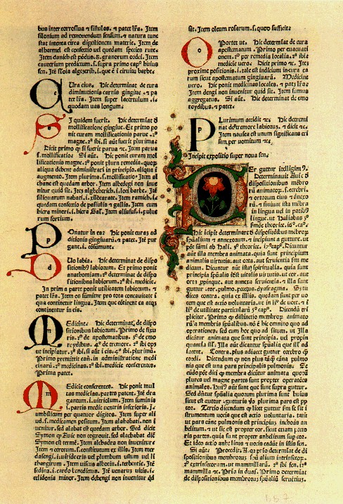 NELL'IMMAGINE SOPRA PROPOSTA UNA PAGINA DEL CANONE DI AVICENNA NELL'INCUNABOLO STAMPATO IN PADOVA NEL 1477 DA PETRUS MAUFER E CUSTODITO A ROMA NELLA BIBLIOTECA DELL'ACCADEMIA NAZIONALE DEI LINCEI