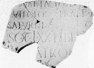 E' IL SECONDO FRAMMENTO DI UNA LAPIDE DEL I SECOLO D. C. DI IMPORTANTE PERSONAGGIO INTEMELIO IN CUI VENGONO CITATI I DEDICANTI, I SOCII VIGESIMAE LIBERTATIS (conservata in museo archeologico di Ventimiglia)