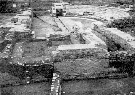 QUELLO CHE SI VEDE IN PRIMO PIANO NELL'IMMAGINE E' IL PARASCAENIUM ORIENTALE, IL MEGLIO CONSERVATO (QUELLO OCCIDENTALE, IN FONDO ALL'IMMAGINE, FU DISTRUTTO ASSAI PRIMA ASSIEME ALLE MURA CITTADINE CHE LO FIANCHEGGIAVANO) CHE IN QUALCHE MODO VENNE RIUTILIZZATO IN EPOCA BIZANTINA, DOPO CHE NE ERAN STATI ASPORTATI TUTTI GLI STUCCHI ED ORNAMENTI, CON LA REALIZZAZIONE DI MURI IN PIETRE GREZZE E TERRA