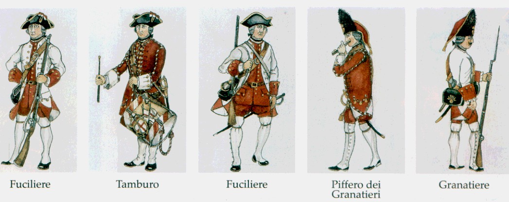 EFFETTIVI DEL REGGIMENTO "BEMBO": QUESTO FU ISTITUITO NEL 1738 SULLA BASE DELLE ANTICHE COMPAGNIE ITALIANE DI SOLDATI "DI FORTUNA", CIOE' QUEI MERCENARI ITALIANI CHE ORIGINARIAMENTE ERANO STATI UTILIZZATI SULLE NAVI DA GUERRA DELLA REPUBBLICA COME SOLDATI DI MARINA. IL REGGIMENTO, COME ERA USUALE NELL'ESERCITO NON SOLO GENOVESE, PRENDEVA NOME DAL SUO COLONNELLO CARLO FRANCESCO BEMBO MA FORSE IL SUO UFFICIALE PIU' FAMOSO FU TOMMASO ASSERETO CHE PRESE EROICAMENTE PARTE ALL'INSURREZIONE GENOVESE DEL DICEMBRE 1706 CONTRO GLI OCCUPANTI AUSTRIACI: E' DA SEGNALARE CHE IL "REGGIMENTO BEMBO" ERA L'UNICO NELL'ESERCITO CHE PORTAVA UN'UNIFORMA BIANCA E ROSSA, CIOE' CON I COLORI DI GENOVA