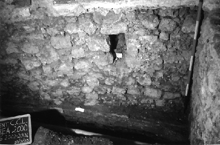 "Particolare della struttura muraria con buche pontaie scoperta in prossimità dell'ingresso al Convento" (foto Gandolfi)