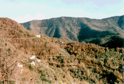 SULL'ANTICO PERCORSO CHE CONGIUNGE APRICALE, E QUINDI LA VALLE DEL NERVIA, A BAIARDO SI INCONTRA QUESTA CHIESA CAMPESTRE DI S. MARTINO, ADATTA PER LA SOSTA DEI VIANDANTI: QUI APPENA SI VEDE DA LONTANO, IMMERSA NELLA VEGETAZIONE (FOTO GIULIO PANCIROLI)