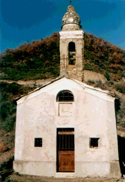 SULL'ANTICO PERCORSO CHE CONGIUNGE APRICALE, E QUINDI LA VALLE DEL NERVIA, A BAIARDO SI INCONTRA QUESTA CHIESA CAMPESTRE DI S. MARTINO, ADATTA PER LA SOSTA DEI VIANDANTI: QUI APPENA SI VEDE DA LONTANO, IMMERSA NELLA VEGETAZIONE (FOTO DI G. PANCIROLI)