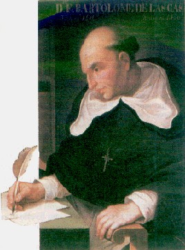 Bartolomeo de Las Casas (1474 1566), detto anche l'"apostolo degli indios" (che qui vediamo riprodotto da un ritratto custodito alla Biblioteca Colombiana di Siviglia) fu figlio di un ricco proprietario spagnolo di piantagioni nei Caraibi. Rimasto colpito dalle durissime condizioni di vita e lavoro degli amerindiani schiavizzati si fece sacerdote per meglio assumerne le difese. Convinto che la "colonizzazione deve servire più agli infedeli che ai principi cristiani" esperimentò un particolare sistema di colonizzazione e civilizzazione degli indigeni ed al proposito ottenne nel 1520 un territorio di costa di 250 leghe, ma non ottenne i risultati attesi. Decise allora di difenedere gli Indios come predicatore e divenuto vescovo di Chiapas nel 1544 intensificò questa sua opera ottenendo però l'odio dei latifondisti spagnoli. Nonostante l'appoggio del papa fu costretto a ritornare in patria e discolparsi, con successo, da gravi accuse di eresia. Per l'età avanzata e le malattie non tornò poù in America ma continuò a difendere la causa degli Amerindiani al punto estremo che consigliò poi la tratta dei negri ritenendo che, per la loro robustezza, fossero meglio idonei degli Indios a sopportare il massacrante lavoro delle coltivazioni americani. Successivamente si opentì aspramente di questa sua affermazione sostenendo pubblicamente che la "cattività dei negri è ingiusta tanto quanto quella degli indiani"