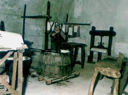 E' ormai quasi impossibile visualizzare l'interno di un'antica CARTIERA. Un soccorso didattico puņ comunque essere fornito da una visita al MULINO DELLA CARTA DI PUCARA - LOCALITA' FRESCO DI PUCARA [84010 TRAMONTI (SALERNO)] che costituisce un autentico fenomeno di archeologia industriale. L'opificio, che sorge presso il corso del torrente Reggiana Major, permette in qualche modo di verificare la dotazione e la strumentazione delle antieche CARTIERE come quella di ISOLABONA. Si riconoscono infatti attrezzature secolari fra cui una ruota idraulica a peso che aziona il molino a pile necessario per spapolare gli stracci di cotone. Risulta poi particolarmente interessante un piccolo MAGLIO che trae forza motrice dall'energia idraulica: esso risale presumibilmente ad un periodo compreso fra i secoli XV e XVI e serviva per la lisciatura del foglio. In questo OPIFICIO CAMPANO si realizzano ancora manualmente i FOGLI DI CARTA: questi vengono realizzati con telaio con filigrana, poi pressati con il torchio (che si vede in fondo all'immagine sopra riprodotta) e quindi posti ad asciugare in uno stenditoio di cui č originale il telaio di legno, ed in cui si possono osservare i fori di areazione nel complesso murario, fori necessari per accelerare il processo di asciugamento della carta.