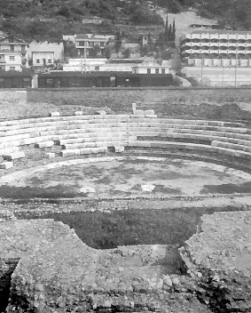 ALZANDO GLI OCCHI, GLI ATTORI, DALLA SCENA, IN QUELLO STRANO GIORNO DI UN ANNO QUALSIASI DEL II SECOLO D. CRISTO, POSSONO VEDERE L'ALTURA DA CUI NACQUE L'ANTICHISSIMA CITTA' DI VENTIMIGLIA, QUELLA POI DETTA DI COLLA SGARBA. NE' A LORO NE' FORSE AL SIGNOR CAIO VIEN DA PENSARE CHE QUELL'ALTURA AVREBBE FATTO ANCORA PER SECOLI "DA GUARDIA" ALLA VIA DEL NERVIACHE, ALLA LORO EPOCA, PERMETTE DI ATTRAVERSARE VARIE AZIENDE ROMANE SPARSE PER LA VALLATA, ARRIVARE AD AMMIRARE I GRANDI MONTI E LE MISTERIOSE SORGENTI DELL'INTERNO SIN A SUPERARE L'OLTREGIOGO, ORA PROCEDENDO VERSO ALTRI MONTI SACRI E SANTE SORGENTI ORA, SEGUENDO LE VIE DEL SALE E PERCORRENDO LE TERRE CONSACRATE AGLI DEI DEGLI ANTICHISSIMI LIGURI, SALIRE DA TENDA ALLA CITTA' DI PEDONA E QUINDI CONTINUARE IL VIAGGIO NELLA CISALPINA O NELLE VICINE PROVINCE