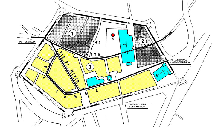 CONFRONTA QUI ORA QUESTA MAPPA CON UNA VEDUTA AREA DEL NUCLEO STORICO riproduzione, con informatizzazione mappa, da "Bordighera nella Storia..."