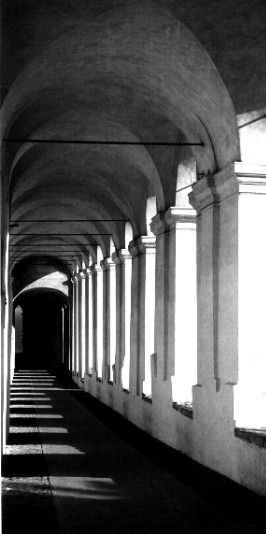IL LOGGIATO APPARTIENE AL COMPLESSO DEL CONVENTO DI S. CHIARA. LA PRESENZA DI RELIGIOSE A PORTO MAURIZIO RISALE AL XIV SECOLO PUR SE SOLTANTO NEL '400 SI ASSISTETTE AL LORO INQUADRAMENTO NEL SISTEMA SPIRITUALE FRANCESCANO. LA CHIESA ATTUALE RISALE PERO' AD UN PROGETTO DEL 1620 DIPENDENTE DA LASCITI TESTAMENTARI DEI FRATELLI BARLA DI PORTO MAURIZIO: I LAVORI FURONO QUINDI CONDOTTI DALL'ARCHITETTO BARTOLOMEO CALISSANO DI CANDEASCO. NEL XVIII SECOLO SI EBBERO ULTERIORI INTERVENTI EDILI (LO SI NOTA DALLE FINESTRE E SOPRATTUTTO DAL PICCOLO CAMPANILE A BASE TRIANGOLARE). LO SPLENDIDO LOGGIATO FU REALIZZATO NEL XVIII SECOLO (SU PROGETTO DELL'ARCHITETTO GREGORIO DE FERRARI CONCLUSO PERO' NEL 1717 -DOPO UN TERRIBILE CROLLO DEL 1713- DA GIACOMO FILIPPO MARVALDI) ALLO SCOPO DI COLLEGARE IL CONVENTO CON LA VECCHIA CINTURA DELLE MURA DI CUI TUTTORA SOPRAVVIVE UN TORRIONE
