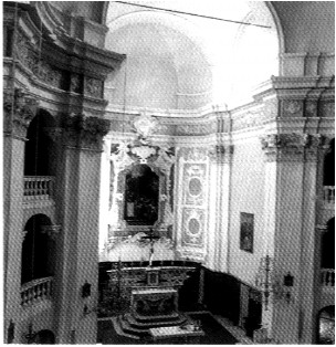 L'EDIFICIO RELIGIOSO (NELL'IMMAGINE SI PUO' AMMIRARNE IL CORO) CHE APPARTENEVA AL COLLEGIO LOCALE DEGLI SCOLOPI FU COSTRUITO PER VOLONTA' TESTAMENTARIA DI ULISSE CALVI CHE FECE UN COSPICUO LASCITO. L'EDIFICAZIONE, SEGUENDO UN PROGETTO DI GIACOMO FILIPPO MARVALDI, SI DATA DALL'INIZIO DEL '700 MA I LAVORI FURONO CONCHIUSI PARECCHIO TEMPO DOPO, SOTTO LA DIREZIONE DEL FIGLIO DEL PROGETTISTA FRANCESCO MARIA MARVALDI, NELL'ANNO 1740. LA PIANTA DELLA CHIESA E' OVOIDALE: LA FACCIATA E' STATA RIFATTA NEL XIX SECOLO E CONTRASTA ABBASTANZA CON LA DINAMICITA' DELL'INTERNO E CON LA SNELLEZZA TIPICAMENTE BAROCCA DEL SUPERSTITE CAMPANILE
