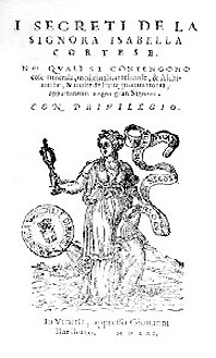 "E' con la riedizione di un delizioso volumetto [ha scritto qualche anno fa Valeria D'Aversa] , pubblicato nel 1561 e ora riprodotto in copia anastatica, dedicato a I secreti di Isabella Cortese, ne' quali si contengono cose minerali, medicinali, artificiose e alchemiche, e molte dell'arte profumatoria, appartenenti ad ogni gran signora che l'Assessorato alla Dignità del Comune di Napoli ha ricordato quest'anno l'8 marzo, nell' ambito della manifestazione MARZODONNA '99: del lavoro qui si propongono solo alcune parti del LIBRO II e precisamente le disquisizioni sull'uso della CANFORA O ZOLFO DEI FILOSOFI, sulla PRATICA DI PRETE BENEDETTO DA VIENNA e su vari tipi di RICETTE. DE GLI SECRETIDELLA SIGNORA ISABELLA CORTESE