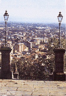 SOPRA UNA VEDUTA MODERNA DI BORGO SAN DALMAZZO RIPRESA DA REPERTORIO TURISTICO - PROMOZIONALE