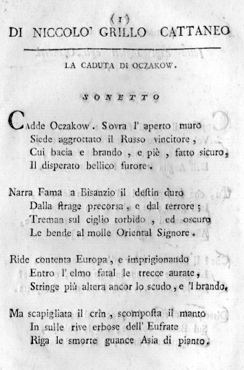 AUTORE DEL SONETTO QUI PROPOSTO FU IL PATRIZIO GENOVESE NICOLO' CATTANEO GRILLO (P.1 DEL TESTO SETTECENTESCO SOTTO CITATO)