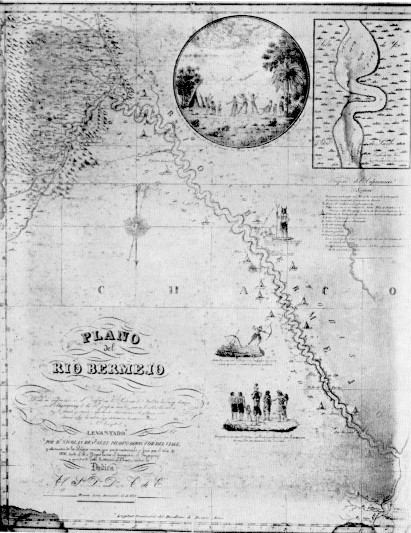 su confluencia con el Negro en la Provincia de Salta, hasta SU desague en el Paraguay de la del propio nombre segun derrotero llevado a ley de estima ajustada a oportunas observaciones de altura meridiana sobre la latitud, y distancias lunares en cuanto a la longitud: levantado por D. Nicolas Descalsi, Piloto Director del viaje, y constructor de la Barca menor, que para reconocerlo se hizo por el ano de 1826, desde el Rio Negro hasta el desaue en el Paraguay, y guardia de Talli fronteriza al Chaco; quien lo d¢dica al S.or Don