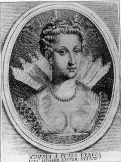Nell'incisione, tratta dal volume Elogia virorum literis et sapientia illustrium, ad vivum expressis imaginibus exornata di Giacomo Filippo Tomasini (Padova, per Sebastiano Sardi, 1644) è effigiata MODESTA DAL POZZO letterata veneta, morta in giovane età nel 1592: il Tomasini, vescovo di Lubiana, la ascrisse a quel contesto di letterate italiane meritevoli di comparire a fianco di molti eruditi di sesso maschile e tra queste ascrisse anche Laura Cereta; Isicratea Dal Monte; Cassandra Fedeli; Angela, Ginevra, Isotta e Laura Nogarola