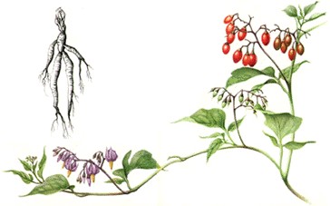 La DULCAMARA (Solanum dulcamara - Famiglia Solanacee) è una pianta erbacea perenne che cresce nei boschi umidi, lungo corsi d’acqua, nelle siepi, vicino alle abitazioni umane e ai ruderi.