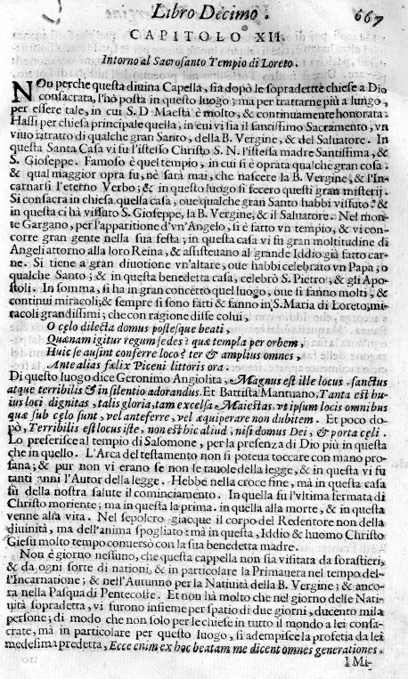 CON QUESTA MINUZIOSA DESCRIZIONE ENTRO UN SUO DOCUMENTATISSIMO VOLUME AI PRIMI DEL XVII SECOLO IL GESUITA NAPOLETANO LORENZO MASELLI NARRO' LE VICISSITUDINI DI QUELLA CASA DI LORETO, DESTINATA A GRANDE VENERAZIONE E A DIVENTARE PARTE FONDAMENTALE DI UN CELEBRE SANTUARIO DELLA CRISTIANITA', CHE GODETTE DI GRANDE RINOMANZA ANCHE IN LIGURIA OCCIDENTALE E CHE IN QUALCHE MODO FU "IMITATO" TRAMITE L'EREZIONE DELL'EMULO ED OMONIMO SANTUARIO DI LORETO IN VALLE ARGENTINA