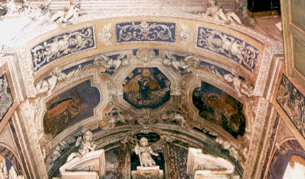 NELL'IMMAGINE (TRATTA DA REPERTORIO ARTISTICO CULTURALE (P.53) SI VEDE IL DECORO A STUCCO DELLE VOLTE DI UNA CAPPELLA DELLA "CHIESA SAINT-PIERRE-AUX-LIENS". COME SCRIVONO I BRILLANTI AUTORI DEL CITATO REPERTORIO "LA SCELTA DELL'ARCHITETTO JEAN ANDRE' GUIBERT, E' CHIARAMENTE EVIDENTE. UN RITMO TERNARIO, QUELLO DELLA TRINITA' SI COGLIE IMMEDIATAMENTE. LA FACCIATA DELLA CHIESA PRESENTA UNA CAMPATA MEDIANA PIU' DECORATA, LEGGERMENTE IN AVANTI, E DUE CAMPATE LATERALI ARRETRATE, PIU' SOBRIE. LE DUE CAPPELLE DEI PENITENTI ATTIGUE ALLA CHIESA RIPRENDONO LO STESSO SCHEMA, AMPLIFICANDOLO, E LA FACCIATA DELLA CHIESA FUNGE QUASI DA CAMPATA CENTRALE. PER RIASSUMERE L'ORGANIZZAZIONE DELLA FACCIATA IN UNA FIGURA GEOMETRICA SI POTREBBE PENSARE A UN TRIANGOLO, QUINDI DI NUOVO UNA FIGURA TERNARIA...IL SISTEMA ARCHITETTONICO SVILUPPA UNO DEI TEMI PIU' IMPORTANTI DELLO STILE BAROCCO, LA RICERCA DELLA COSTRUZIONE DEL MONUMENTO MEDIANTE LA MESSA IN SCENA DELLO SPAZIO URBANO DELLA PIAZZA (CFR. PIAZZA SAN PIETRO A ROMA). LA CHIESA CHE SOVRASTA LE DUE CAPPELLE DELLE CONFRATERNITE DEI PENITENTI, AVANZA VERSO LA PIAZZA AL CENTRO DELLA COMPOSIZIONE. LA CAMPATA MEDIANA DELLA FACCIATA DELLA CHIESA, E ATTRAVERSO QUESTA IL PORTALE -UNICO MODO PER ACCEDERE ALL'INTERNO- ACCOLGONO IL FEDELE. IL PORTALE E' SITUATO SULL'ASSE DI SIMMETRIA VERTICALE DELL'EDIFICIO; IL SUDDETTO ASSE CULMINA IN CIMA AL FRONTONE TRIANGOLARE, PUNTO FOCALE DELLA COSTRUZIONE IN VERTICALE, MESSO IN EVIDENZA DA UN CROCEFISSO. IL PORTALE E' COSI' CHIARAMENTE CHIAMATO A RAPPRESENTARE L'INIZIO DEL CAMMINO CHE CONDUCE A DIO"