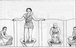 Immagini dell' Officina fullonica od Officina fullonum scoperta a Pompei nel 1821: sono state riprese ed informatizzate da Lessico Ragionato dell'Antichità Classica di FEDERICO LUBKER, Forzani e C., Roma, 1898 sotto voce FULLO