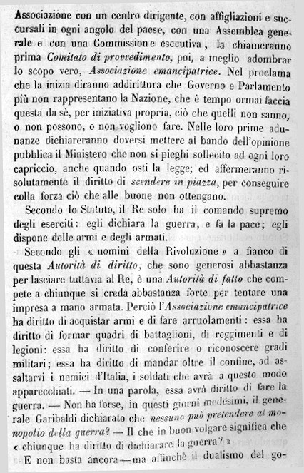 PARAGRAFO VI DALL'OPUSCOLO LA PAURA - GARIBALDI O LA LEGGE? DI PIER CARLO BOGGIO: NATURALMENTE QUI E' REPORTATA L'IDEA CHE I PARLAMENTARI GOVERNATIVI E DELLA DESTRA TORICA DEI LIBERALI AVEVANO NEI CONFRONTI DEI "RIVOLUZIONARI" (TRA CUI ERANO ASCRITTI MAZZINIANI E GARIBALDINI, MA ANCHE ALTRI ESPONENTI DI NUOVE IDEOLOGIE SIA DEL SOCIALISMO SCIENTIFICO CHE DI QUELLO UTOPISTICO: IN SOSTANZA TUTTI I POTENZIALI "REPUBBLICANI")