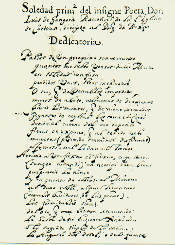 Nell'immagine è riprodotta la pagina iniziale del manoscritto 7 della BIBLIOTECA APROSIANA in cui si custodisce una variante delle "Obras" di Luis de Gongora di cui il Prof. Mario Damonte, che peraltro ha curato con A. M. Mignone, il "Catalogo" del ricco fondo spagnolo dell'Aprosiana, ha dato comunicazione all'VIII Congresso Internazionale degli Ispanisti dell'agosto 1983 (Università di Providence - U.S.A.).