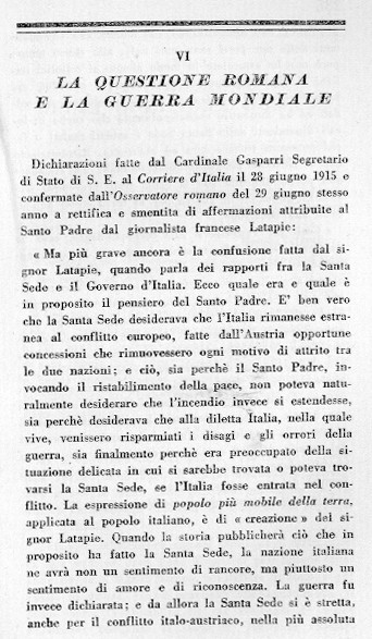 POSIZIONE DEL PAPATO IN MERITO ALLA QUESTIONE ROMANA DURANTE IL PRIMO CONFLITTO MONDIALE, DOCUMENTO TRATTA DAL PERIODICO "LETTURA ITALIANA" - MARZO APRILE, VII, 1929: "CLICCA QUI" PER VOLTARE PAGINA