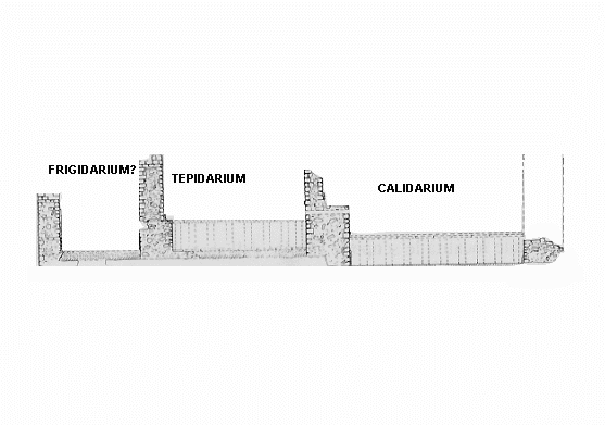 SEZIONE PROSPETTICA DELL'IMPIANTO TERMALE RICOSTRUITA IN "RIVISTA INGAUNA INTEMELIA" 1963