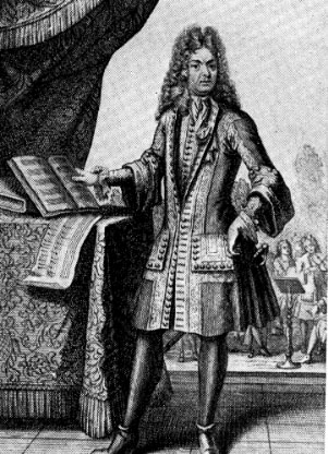 GIAMBATTISTA LULLI EFFIGIATO IN UNA STAMPA DEL XVII SECOLO (DA ARCHIVIO FOTOGRAFICO DEL "MUSEO DELLA CANZONE" DI VALLECROSIA)