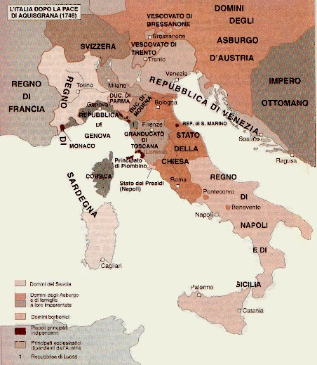 L'ITALIA DOPO LA GUERRA DI SUCCESSIONE AL TRONO IMPERIALE (LA PACE DI AQUISGRANA)SITUAZIONE DOPO IL 1748