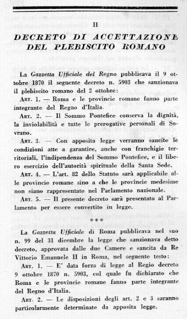 IL DOCUMENTO SULLA SOPPRESSIONE DELLO STATO PONTIFICIO E SULLA SUA ANNESSIONE ALL'ITALIA: "CLICCA QUI" PER RITORNARE ALL'INDICE GENERALE VOCE CRISTIANESIMO
