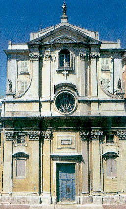 DI QUESTA CHIESA, SITA AL CENTRO DI COURS SALEYA, CON DOVIZIA DI DETTAGLI SI PARLA (P.23) IN APPOSITO VOLUME. NON SI PUO' TUTTAVIA QUI SOTTACERE COME L'EDIFICIO EDIFICATO IN UN'AREA DI TRANSIZIONE TRA LA CITTA' SORICA DI NIZZA E IL SUO MODERNO SVILUPPO DEMICO, IN QUELCHE MODO CONTRIBUISCA A "SEGNARE" QUESTO FENOMENO DI TRANSIZIONE. EDIFICIO SACRO CONVENTUALE LA COSTRUZIONE (1740 - 1786) RISULTA STRETTAMENTE CONNESSA AL CONVENTO CUI APPARTIENE COME FONDAMENTALE APPENDICE: LA SOLA DIFFERENZIAZIONE, VISIBILE NON SOLO PER GLI SPECIALISTI CUI SI E' PRIMA FATTO CENNO BIBLIOGRAFICO, VIENE PROPOSTA DAGLI OCULI CHE SONO DISPOSTI IN MANIERA OBLIQUA E TRIFOGLIATI A PROPOSITO DEL COMPLESSO MONASTICO MENTRE RISULTANO OVALI IN MERITO ALL'AREA OCCUPATA DALLA CHIESA