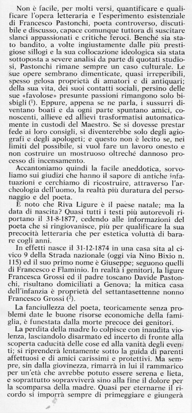 TESTO TRATTO DALLA PUBBLICAZIONE DEDICATA AL PASTONCHI NEL 1983 RICORRENDO IL TRENTENNALE DELLA MORTE