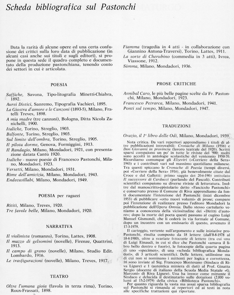 TESTO TRATTO DALLA PUBBLICAZIONE DEDICATA AL PASTONCHI NEL 1983 RICORRENDO IL TRENTENNALE DELLA MORTE
