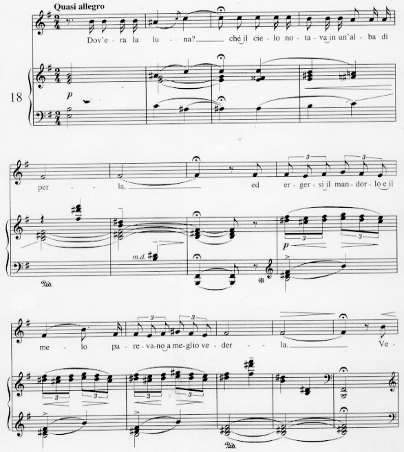 NELL'IMMAGINE, TRATTA DA ARCHIVIO BIBLIOTECA "MUSEO DELLA CANZONE DI VALLECROSIA (IM)", SI VEDE LO SPARTITO DELLA LIRICA L'ASSIOLO TRATTA DALLA SEZIONE IN CAMPAGNA DELLA RACCOLTA MYRICAE.
