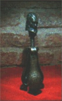 L'effetto era devastante perchè avvitandosi dalla parte in alto nell'immagine la parte inferiore a forma di PERA si apriva nei suoi TERRIBILI PETALI DI FERRO destinati a provocare fratture e soprattutto lacerazioni mortali: un tipo di attrezzo tedesco, ancora più micidiale, al teminale dei PETALI (si passi l'eufemismo) presentava dei PUNZONI ACUMINATI.