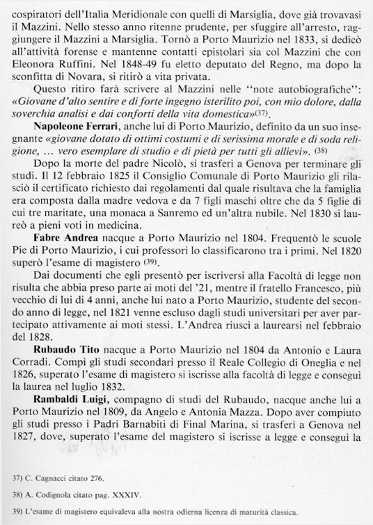 TESTO TRATTO DAL VOLUME SUL "RUFFINI" (CAP. II) DI ALDO SARCHI, UNO FRA I PIU' VERSATILI STORICI DEL PONENTE LIGURE, PREMATURATAMENTE SCOMPARSO E LUMINARE DA RISCOPRIRE SULL'OTTOCENTO RISORGIMENTALE LIGURE PONENTINO
