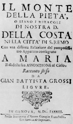 RARO VOLUME DELLA BIBLIOTECA APROSIANA IN CUI G. B. GRASSI DESCRIVE I MIRACOLI DELLA MADONNA DELLA COSTA
