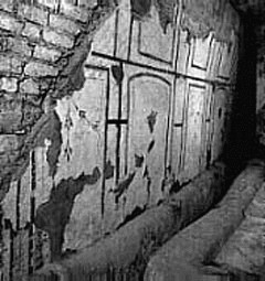 "Il crollo di una parte del muraglione di sostegno del piazzale antistante la chiesa di S. Pietro in Montorio, avvenuto nell'ottobre del 1963, ha portato alla luce i resti di un'antica LATRINA PUBBLICA a Roma (Rione XIII - Trastevere Circoscrizione I Regio XIV Transtiberim Via Garibaldi, sotto piazza S. Pietro in Montorio).