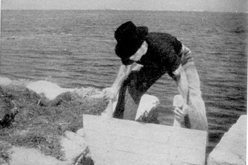 Nell'immagine si vede un dettaglio della precedente SALINA: un SALINARO, camminando sui percorsi che fuoriescono dalle vasche (STRADELLI), ha raggiunto una CHIUSA che consente l'IMMISSIONE DELL'ACQUA MARINA all'interno delle "VASCHE FREDDE".