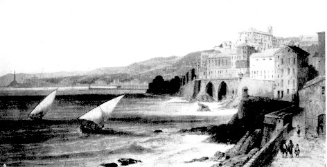 N. CUNEO NEL SUO ANCORA UTILISSIMO VOLUME SULL'EMIGRAZIONE ITALIANA IN ARGENTINA NEL XIX SECOLO HA RIPRODOTTO QUESTA STAMPA APPORTANDO LA SEGUENTE DIDASCALIA: "L'IMBOCCATURA DEL PORTO DI GENOVA NELLA PRIMA META' DEL SEC. XIX (COLLEZIONE TOPOGRAFICA, MUNICIPIO DI GENOVA)"