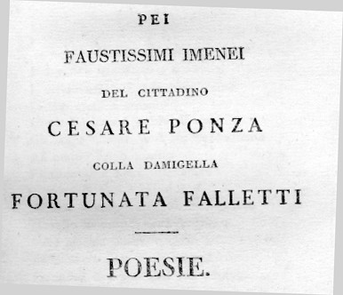 DI UN'OPERA ACCADEMICA, INTITOLATA APPLAUSI, IN CUI, ANNO 1804, VENNE CELEBRATO IL MATRIMONIO TRA CESARE PONZA E FORTUNATA FALLETTI IN MONDOVI'.