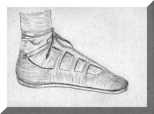 SECONDO ALCUNE VERSIONI A QUESTO TIPO DI CALZATURA ERA DATO ANCHE IL NOME DI CALCEI