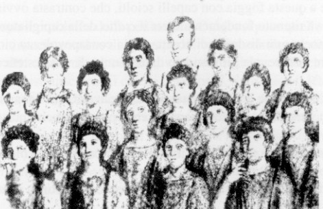 SOPRA, DA UN MOSAICO DI CAPUA: "MAESTRO CON SCOLARE", MOLTE ACCONCIATE COI CAPELLI LUNGHI ALLA FOGGIA DELL'APOLLO MUSAGETE, GIA' CUSTODITA IN MUSEO NAZIONALE DI NAPOLI : IMMAGINE E COMMENTO CRITICO IN SAGGIO A CURA DI EMILIA NANNI IN "QUADERNO DELL'APROSIANA / NUOVA SERIE - STUDI IN ONORE DI MARIO DAMONTE", N.4 - 1996